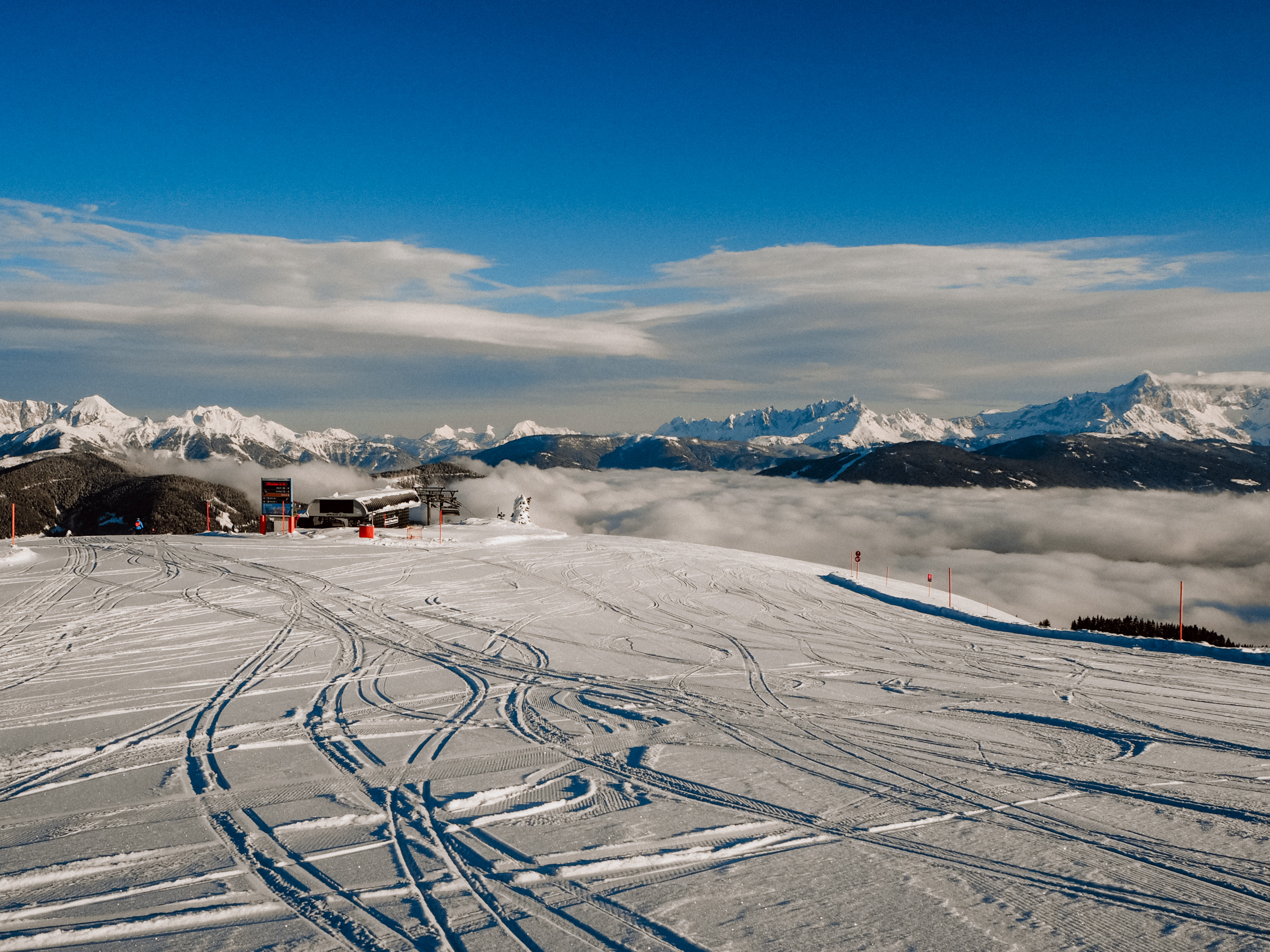 Bei traumhaftem Wetter konnten wir dann als die Ersten die Pisten unsicher machen. Da wir aber ganz Blogger-like ein bisschen die Zeit mit Fotos & Videos machen vertrödelt hatten, waren dann natürlich auch schon die ein oder anderen regulären Skigäste auf der Piste. Nichtsdestotrotz war natürlich um diese Uhrzeit noch verhältnismäßig wenig los und wir haben die Sonne weiter zum Foto machen und Skifahren genutzt. Hier sagen Bilder mehr als Worte. Beim Made my Day bekommt man auch noch einen Skiguide zur Verfügung gestellt. Hier hat uns unser Guide Charly einige tolle Geheimtipps und Fotopoints gezeigt! Wir kennen die Region zwar schon mehr als gut, haben aber auch wieder dazugelernt.
