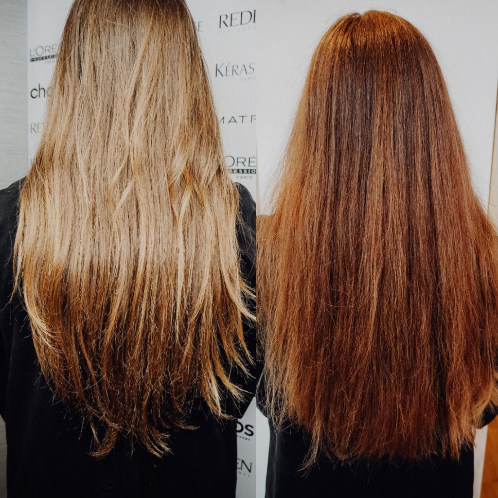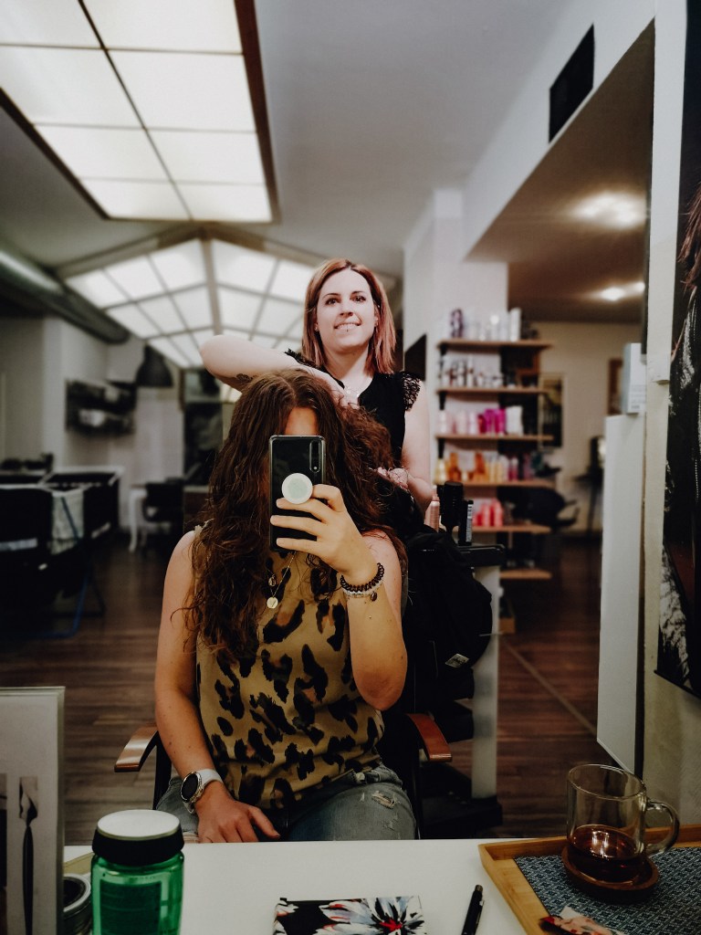 Wir durften den Calligraphy Cut nun schon beide ausprobieren und wurden von Claudia überzeugt. Die Haare haben mehr Sprungkraft, auf einmal mehr Volumen und es dauert um einiges länger, bis sich Spliss bildet. Ich, Marlene, bin schon sehr anfällig, was Spliss angeht, jedoch kann man den Spliss nach einem Calligraphy Cut nicht mit dem nach einem normalen Haarschnitt vergleichen. Da ich nur alle 5-6 Monate zum Friseur gehe, ist es mir wichtig, dass die Haare lange schön aussehen und hier bin ich vom Calligraphieren, nun nach zweimal, schon überzeugt. Man sitzt zwar ein paar Minuten länger beim Friseur und zahlt ein bisschen mehr, aber das Ergebnis kann sich sehen lassen. Bei meinen Nachher-Fotos kann man auch sehr gut erkennen, wie flexibel die Haare im Styling sind – ob Wellen oder Gerade, alles ist möglich.