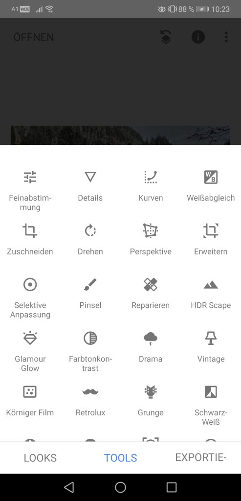 Snapseed ist eine App von Google und somit auch ziemlich einfach aufgebaut. Wir nutzen hier meistens die Tools „Reparieren“ (wo man wirklich extrem gut Dinge in Bildern wegretuschieren kann) und die „Selektive Anpassung“ (bei der man einzelne Bereiche in einem Bild separat bearbeiten kann). Die App ist wirklich sehr gut und bietet tolle Möglichkeiten. Wenn ihr euch also nur für eine App entscheiden wollt und kein Geld für Presets oder ähnliches ausgeben wollt, würden wir euch Snapseed ans Herz legen.
