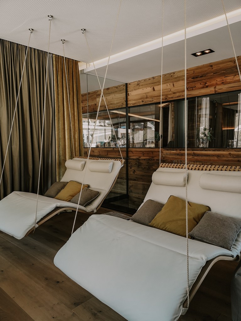 Der zweite Haus „Zwanzigsechzehn“ ist dann der Sauna Bereich. Hier findet man im ersten Stock eine große Auswahl an gemütlichen Day Beds, Wasserbetten und Hängeliegen. Wir haben uns bestimmt 4x umgelegen, da wir einfach jede Art von Liege testen wollten. Im unteren Stock erwartet einen dann die Saunalandschaft und dafür hab ich nur ein Wort: wow! Es gibt eine Außensauna, eine Eventsauna, ein Dampfbad, eine Zirbensauna, einen eiskalten Außenteich und einen warmen Salzwasser-Außenpool. Ich kann wirklich nicht sagen, was mir am Besten gefallen hat aber die Zirbensauna ist schon fast unschlagbar und ich wollte gar nicht mehr raus gehen. Also der Saunabereich im Hotel Nesslerhof ist für alle Saunafans ein wahr gewordener Wellness-Traum.