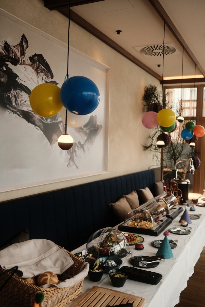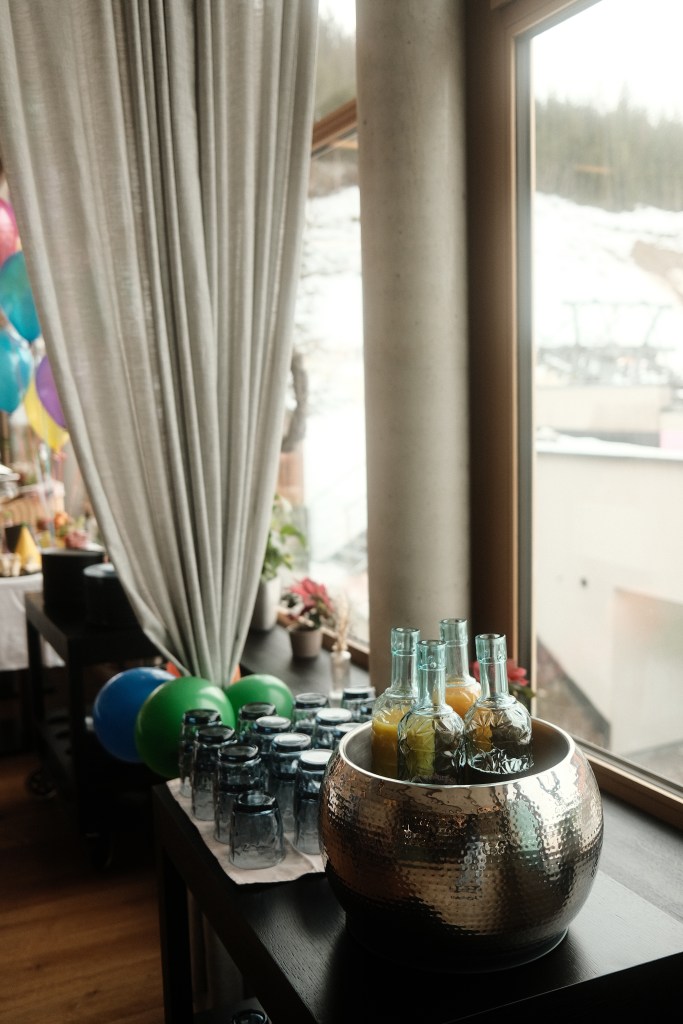 Für uns ging es gleich hinauf in den 2. Stock zum wöchentlichen Sonntagsbrunch im DROI Werfenweng. Wie der Name schon sagt, findet der Brunch jeden Sonntag statt. Ab 10 Uhr geht’s los und bis 14 Uhr kann man schlemmen und das Brunch Buffet in vollen Zügen genießen. Der Brunch findet jeden Sonntag mit einem anderen, Saisonellen Motto statt und somit wechselt auch das Angebot vom Buffet immer ab und es erwartet Euch jede Woche was Neues.