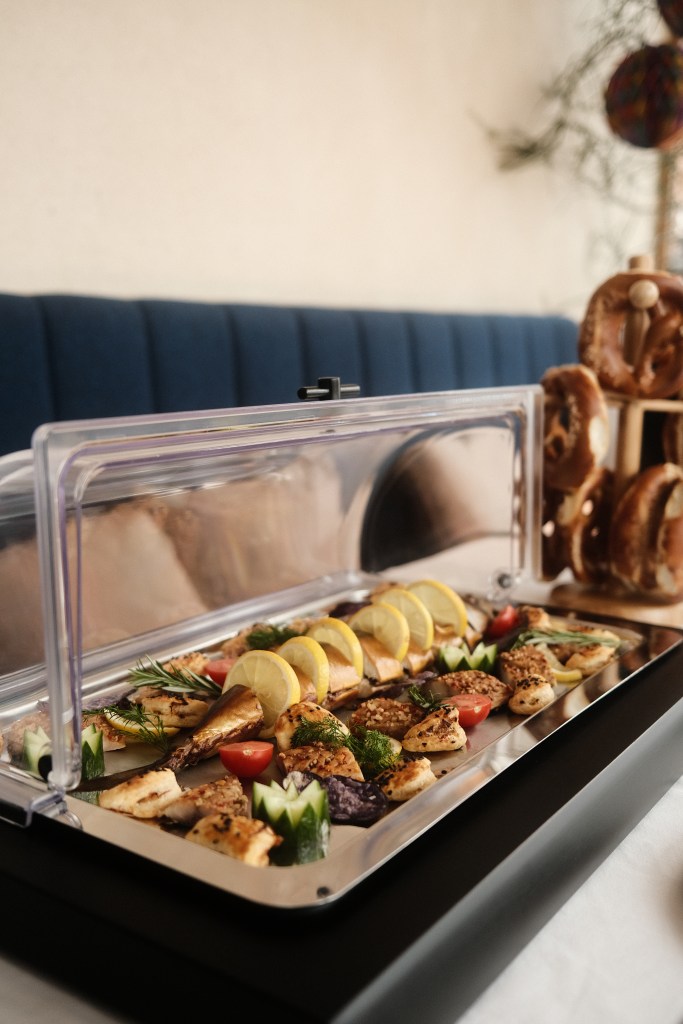 Anschließend geht es dann in den Lunchbereich über zu den warmen Gerichten. Hier gab es bei uns Paprika-Huhn mit Nockerl, Cordon Bleu, Kaspressknödel, Weißwürste und Leberkäse und zum Schluss noch einen leckeren Kaiserschmarren. Das hört sich nach viel an und Ja, das ist es auch. Der Brunch lässt Euch auf keinen Fall hungrig zurück, so viel können wir versprechen.