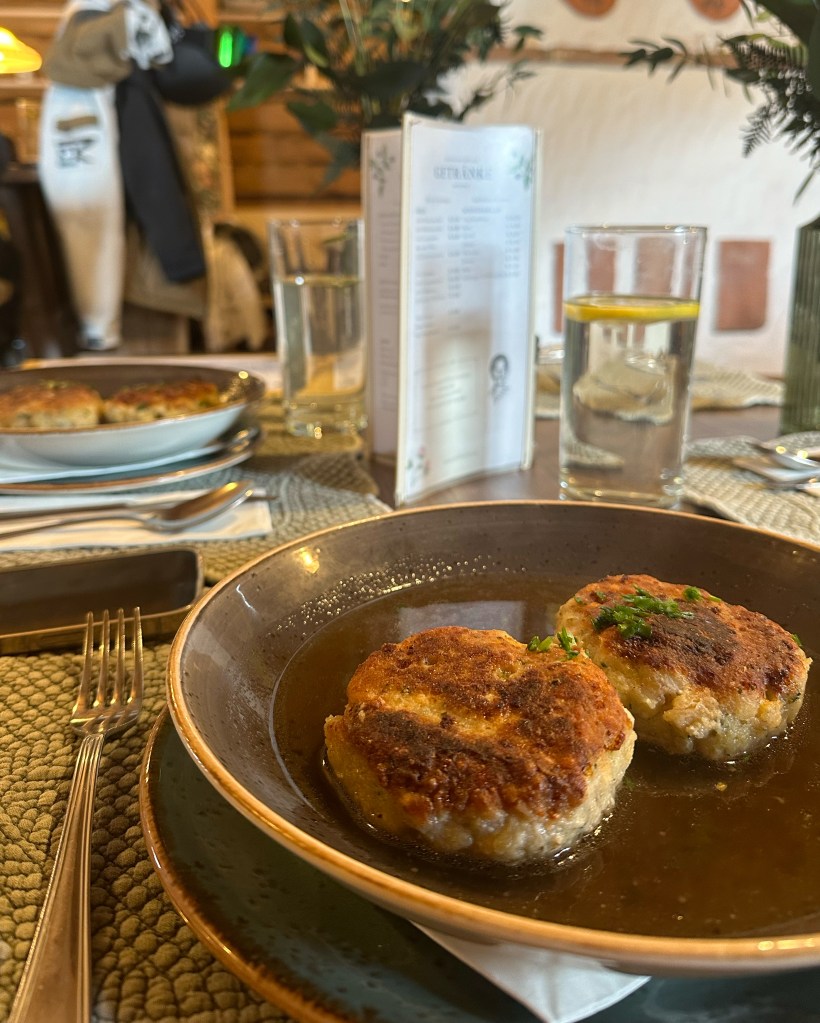 Die Vorspeise wäre erledigt und somit gings weiter zur Hauptspeise und Dessert. Wir haben und dazu entschieden, diese beiden auf einer Hütte zu genießen, weil wir schon genug auf den Ski gestanden sind. Also ging es ins König & Kuh in Dienten. Hier erwartete uns eine große Speisekarte mit viiielen regionalen und tollen Gerichten. Wir entschieden uns als Hauptspeise für einen beliebten König & Kuh Burger und zum Dessert teilten wir uns einen Germknödel. Auch hier wieder Achtung: große Portionen!